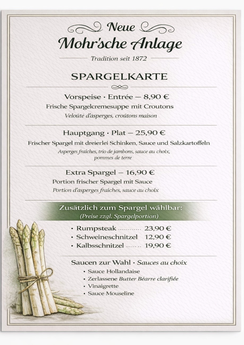 Die besondere Grenzsituation unseres Gasthauses prägt auch unsere Speisekarte. Ob nun die in Frankreich so beliebten Froschschenkel auf der Wunschliste stehen, oder die deftigen Saarländische "Gefillde" oder "Hoorische", wir bieten alles!