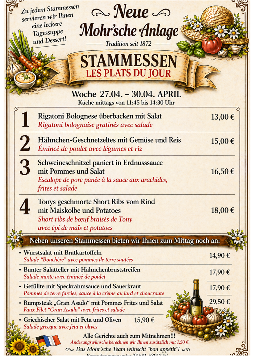 Stammessen - Les Plats de Jour